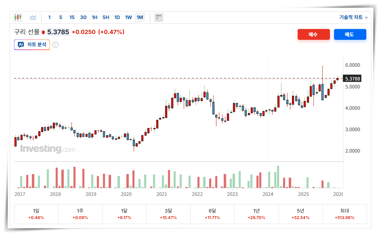 구리는 AI 데이터센터, 전기차 등의 인프라를 구축하는데 필수 소비재이고,