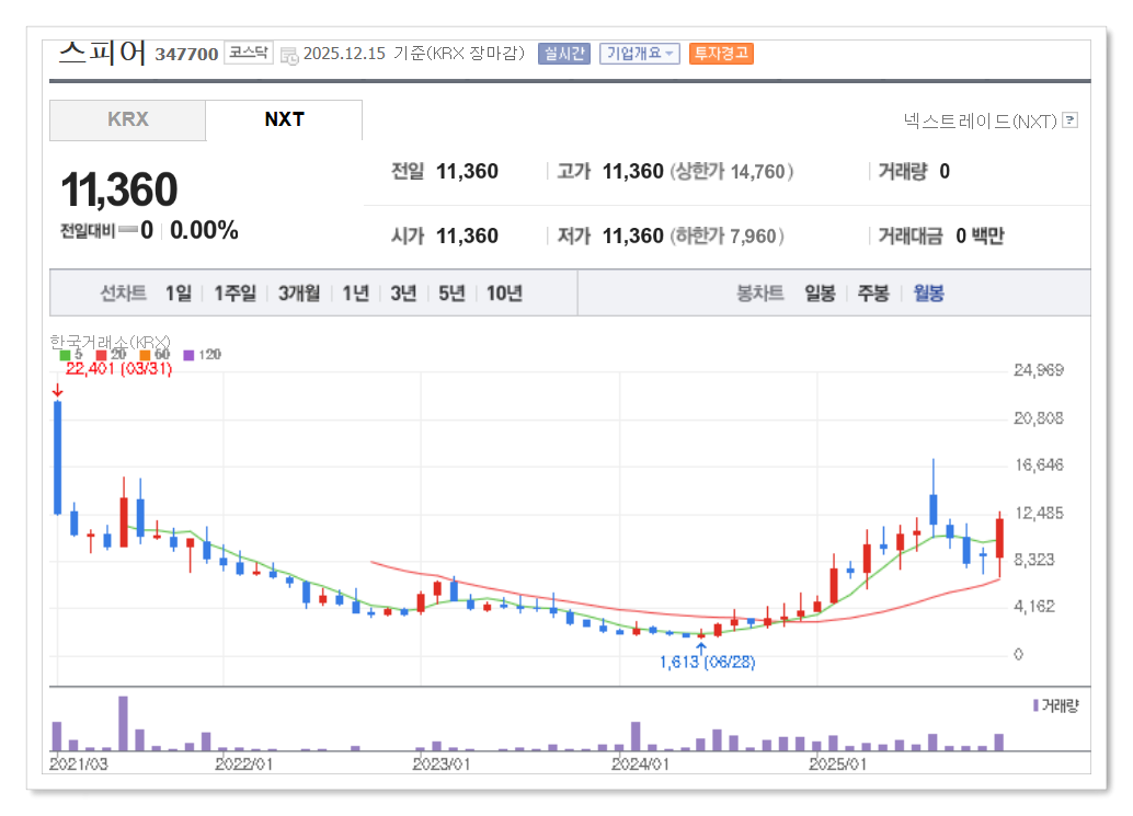 한국 시장에서 관련주로는 '스피어'가 있습니다.